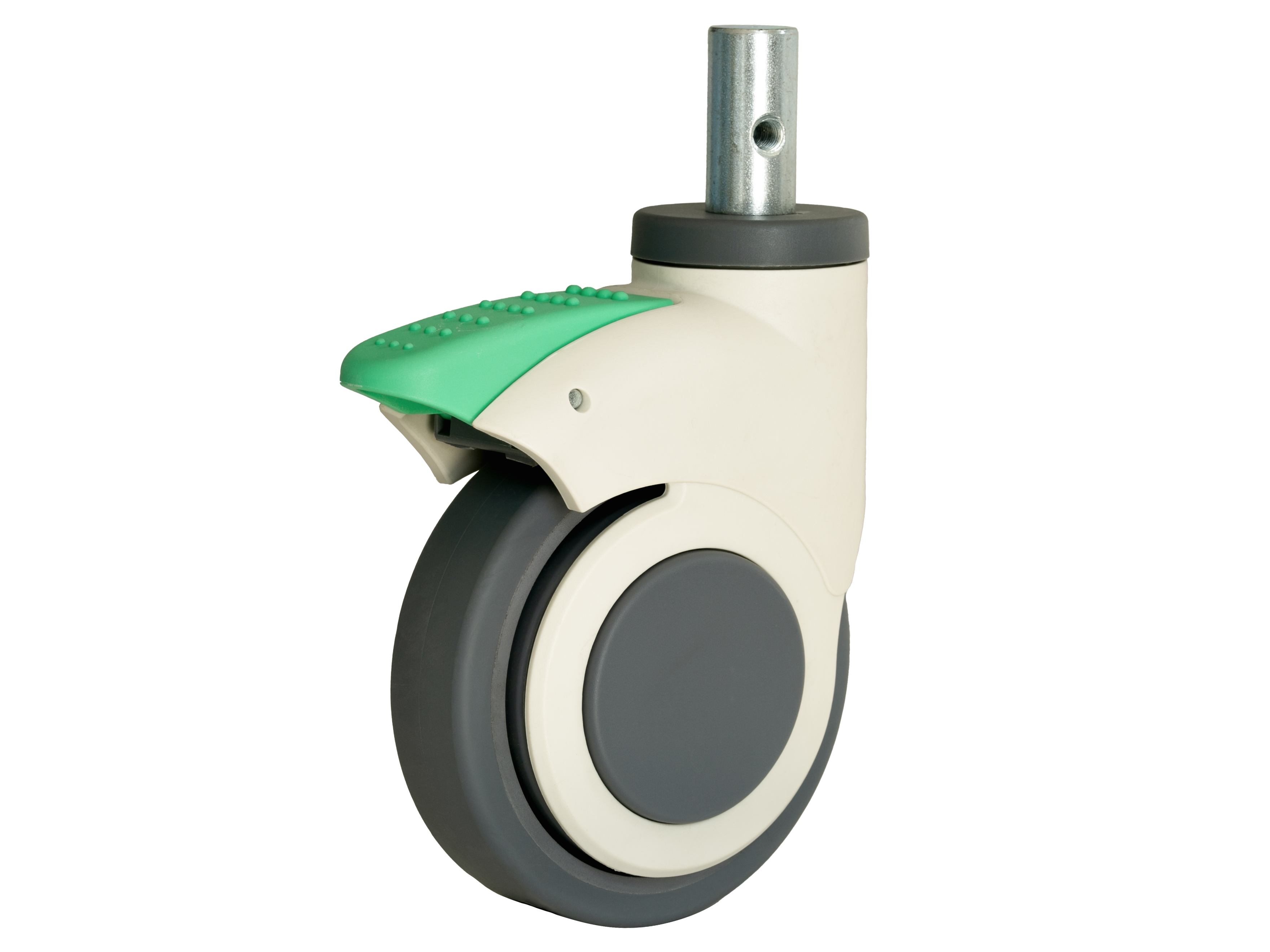 度适中,在确保了强度的前提下,灵活性较为突出,该款脚轮外观设计灵动新颖,全部材料均为抗菌、抗老化、防